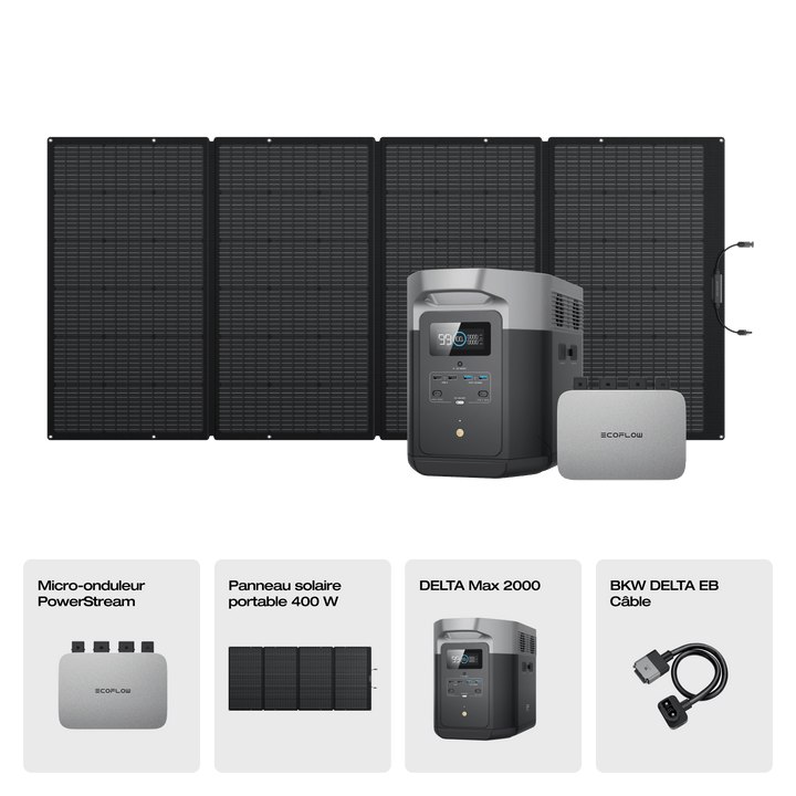 Générateur solaire EcoFlow DELTA Max avec panneau solaire 400 W – Station électrique portable 2016 Wh